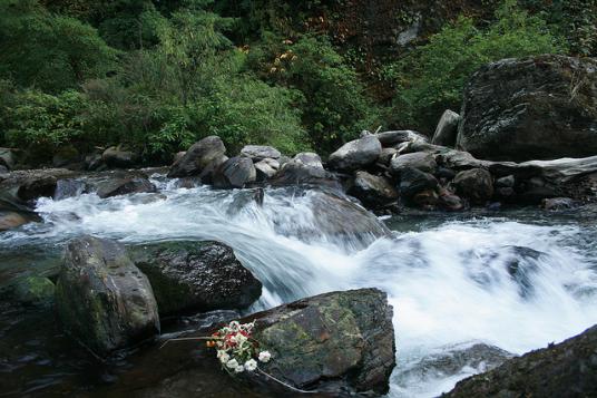 The Langtang valley is aptly called "the valley of glaciers". Here the mountain–scape is spectacular. On either side of valley, mountains rise, soaring into the sky. The valley offers pine forest, slow moving rivers and swift mountain streams, rugged rock and snow–capped peaks, grassy downs and meadows strewn with daisies and wild primulas. In the upper part of the valley there are snow bridges spanning angry torrents, high passes enveloped in mist, tiny lakes with icebergs floating on them and water of crystalline brightness. There are also high mountains of solid ice.
